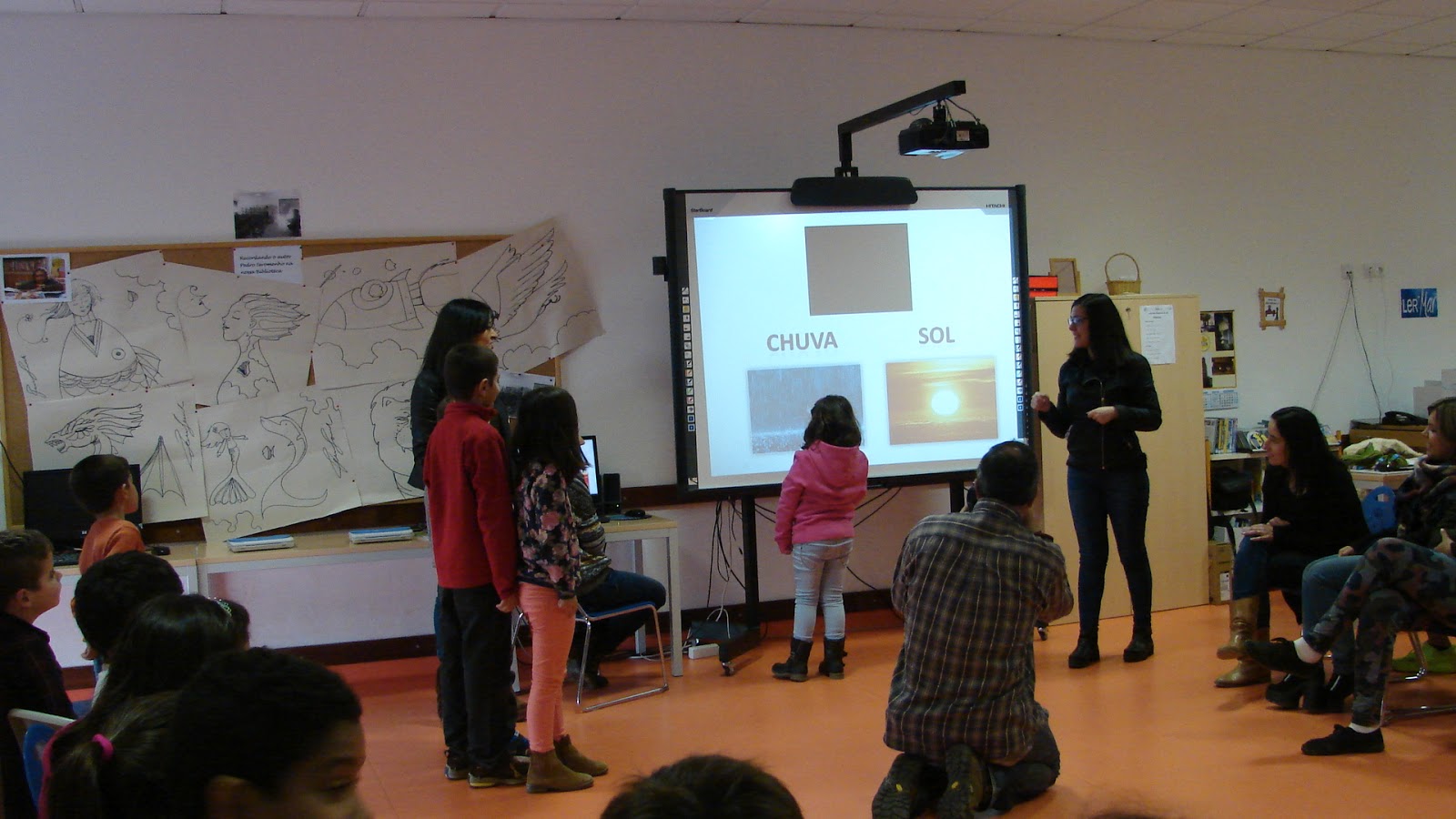 Seguiu-se um jogo interativo  onde os alunos tiveram oportunidade de perceber melhor a história e aprender algum vocabulário em língua gestual portuguesa.
