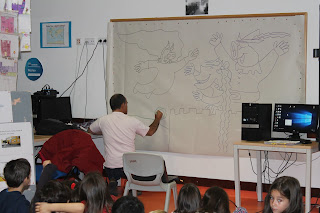 No final, o autor presenteou-nos com uma maravilhosa ilustração que ficará no painel da biblioteca escolar.